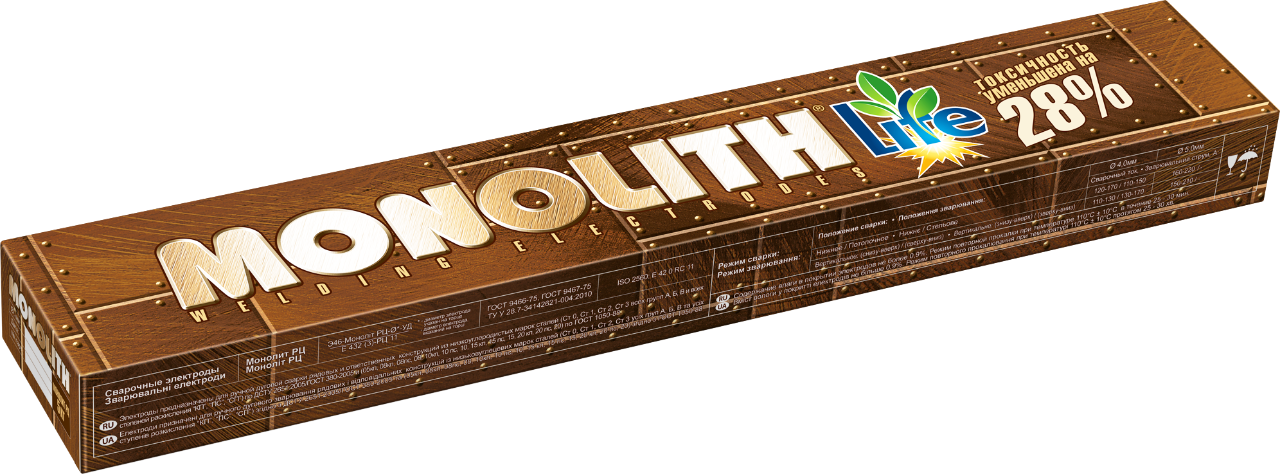- Електроди Моноліт РЦ відрізняються від аналогічних товарів інших виробників меншим питомим виділенням зварювального аерозолю і марганцю при зварюванні. Використання Моноліт РЦ дозволить зменшити токсичну дію аерозолів, що при цьому утворюються, на організм зварників. Це було досягнуто шляхом підбору високоякісної сировини і високим рівнем контролю технологічних процесів при виробництві електродів.